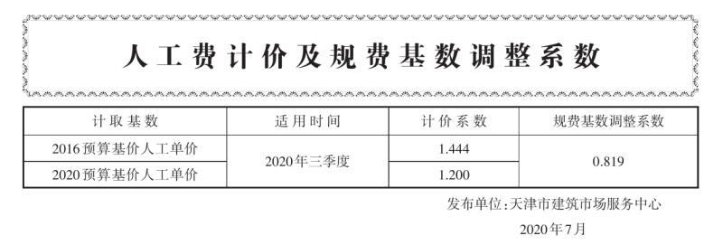 人工費(fèi)計(jì)價(jià)及規(guī)費(fèi)基數(shù)調(diào)整系數(shù)(2020年三季度)